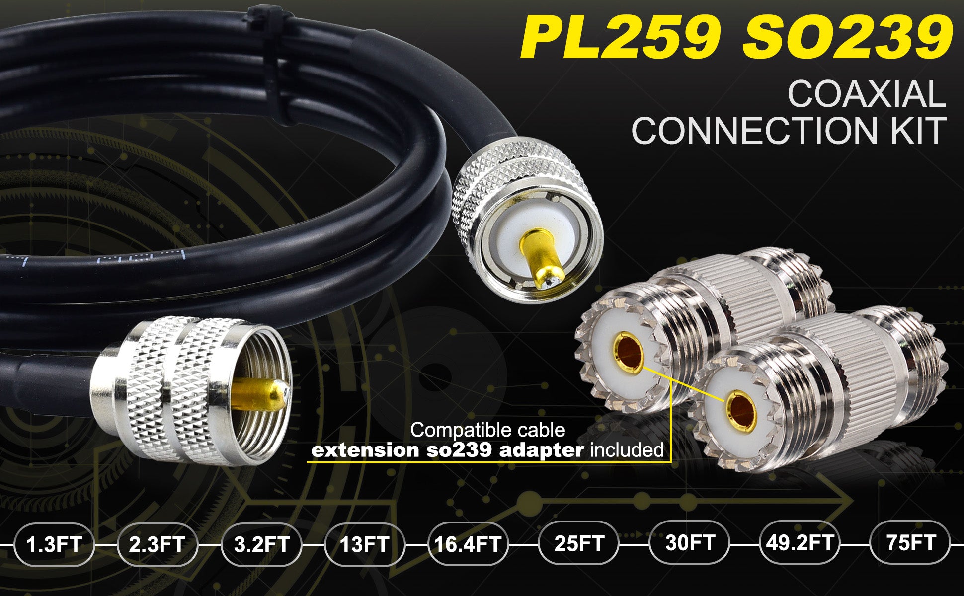 - 【Wide Range of Applications】- The 50 Ohm pl 259 coaxial cable is suitable for various HF/VHF equipment operating in the 0-300MHz frequency band. It is commonly used in CB Radio, Ham Radio, Amateur Radio, Power/SWR Meter, Transceiver, HF Radio, VHF Radio, Antenna, Surge Protector, Walkie Talkies, Marine Boat Antenna Radio, Antenna Analyzer, Antenna Tuner, Dummy Load, Radio Scanner, Linear Amp, and more.